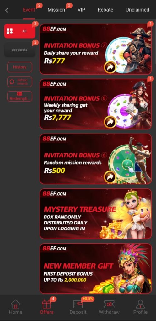 The 88EF Game is an online casino gaming app where users can play different games and earn rewards. Simply put, it is a digital platform that combines entertainment with earning chances. Users can enjoy slot games, card games, and other popular casino-style games. At the same time, the app provides bonuses that help players start without stress.